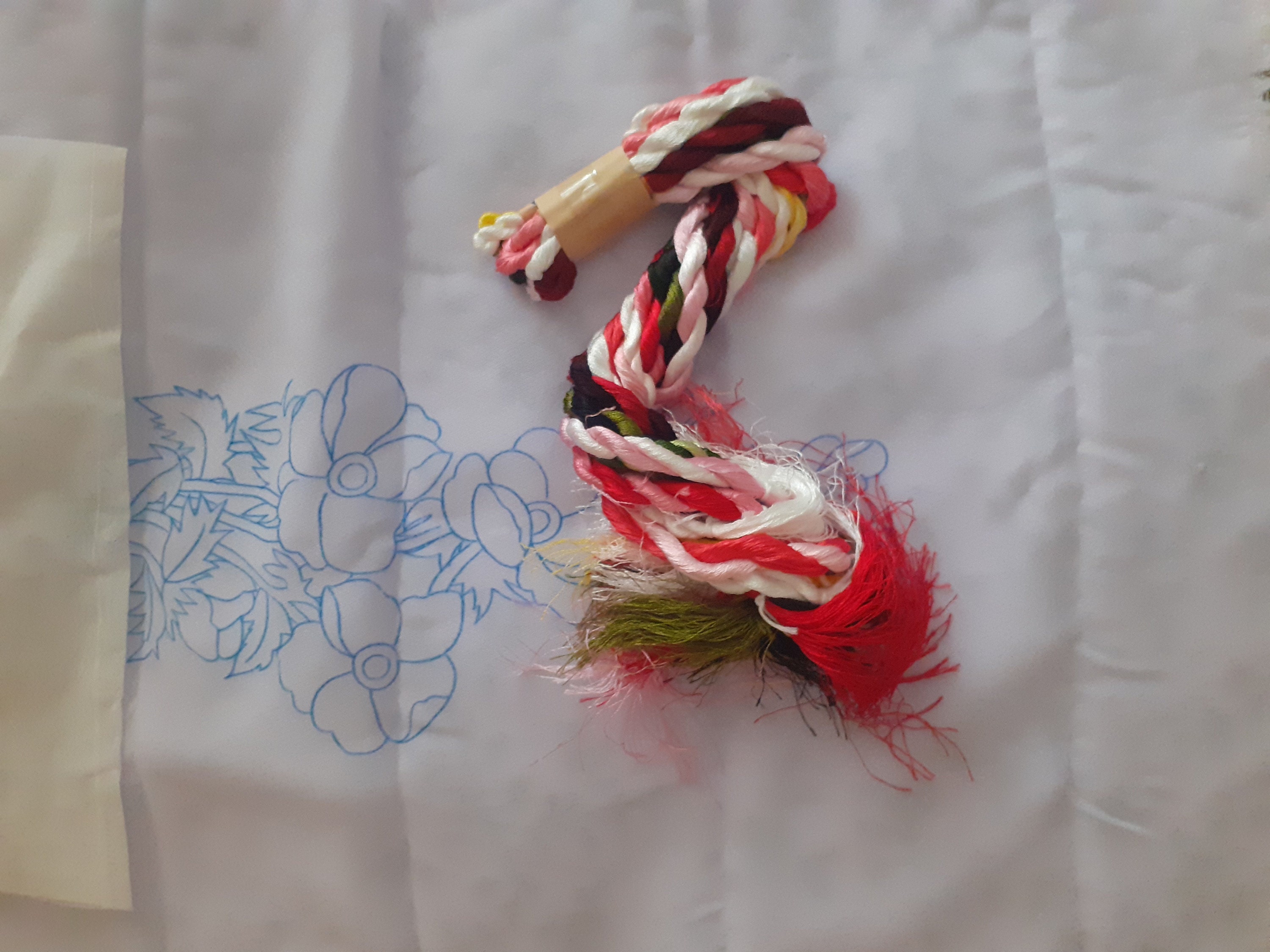 Embroidery pattern is pre-designed on fabric for 8 inches circle (21 cm). A set of shiny synthetic silk embroidery threads (not natural silk).