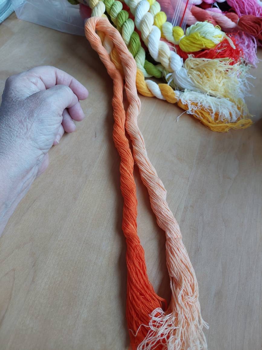 The skeins are comprised of one-yard-long pieces of six-strand floss.
